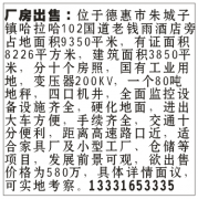 厂房出售:位于德惠市朱城子镇哈拉哈102国道老钱雨酒店旁占地面积9350平米,有证面积8226平方米,建筑面积3850平