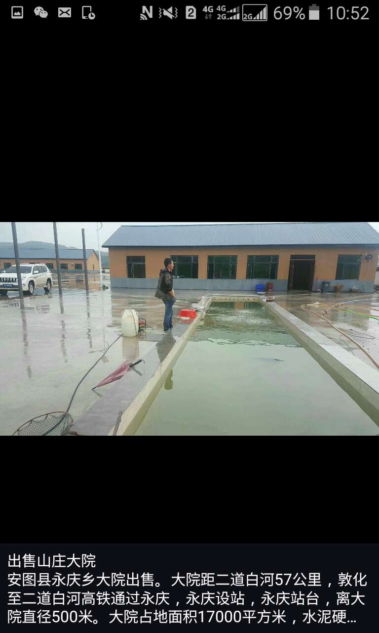 大院距二道白河57公里,敦化至二道白河高铁线,2020年8月份直通车,永庆设站,站台距离大院500米。大院占地面积15000平,水泥硬化面积12000平。院内建有400平方米,精装修宾馆,150平铁锅炖菜饭店,600平阳光棚自主烧烤,另还有145平精装修居住房。院内还设有100kv变压器一组另设有一台120吨的地秤,设备齐全,有意购买者,可前往面谈。