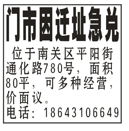 门市因迁址急兑