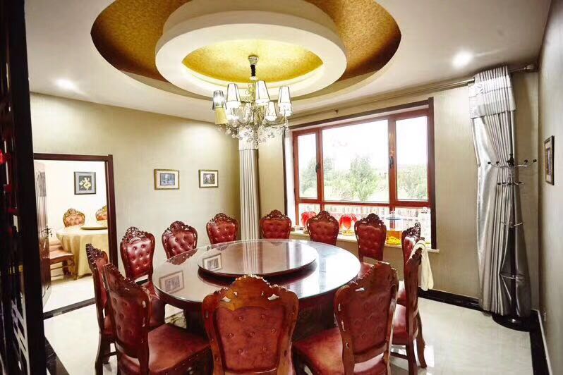 山庄室内经典豪华装璜,内设宴会大厅,可承接中小型商务会议、同学战友聚会、旅游团体40余人用餐,山庄地理位置优越,交通便利发达,环境优美。是理想的休闲下榻之所。