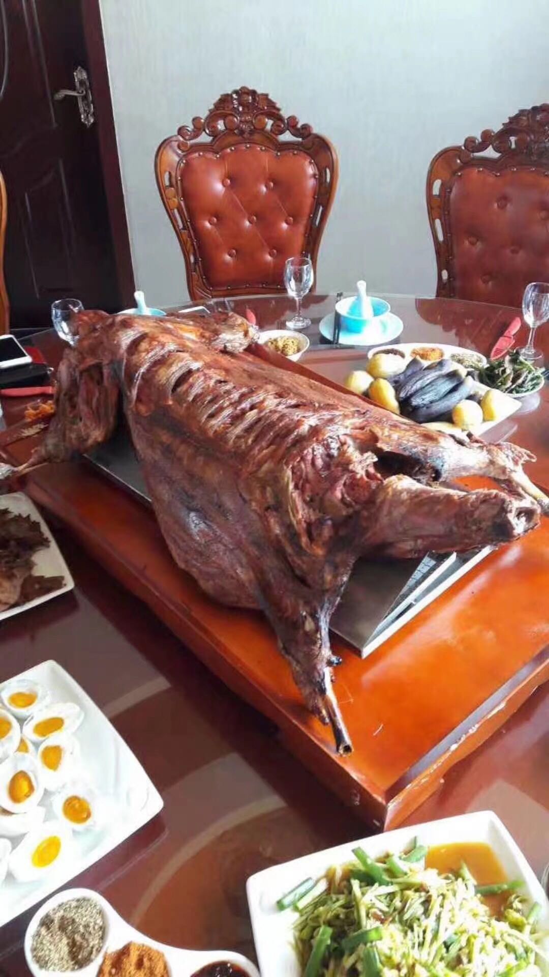 山庄水库面积40多亩,已有成品鱼3-5万斤,主要鱼种有:胖头,白链、鲤鱼、草鱼、鲫鱼、鲶鱼等是垂钓爱好者的首选之地。走进山庄品尝无公害的自种自摘纯绿色农家菜,各种农家用品,厨具齐备,国内比较先进的封闭无烟烤羊机一次性可烘烤羔羊3-4只,传授烤羊全套技术,真正做到没有污染,安全环保、美味绝伦!