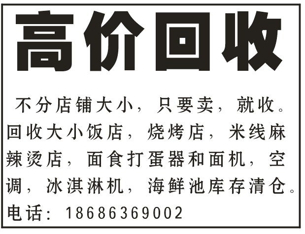 回收大小饭店,烧烤店,米线麻