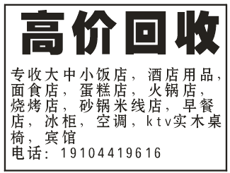 专收大中小饭店,酒店用品,面食店,蛋糕店,火锅店,烧烤店,砂锅米线店,早餐店,冰柜,空调,ktv实木桌椅,宾馆