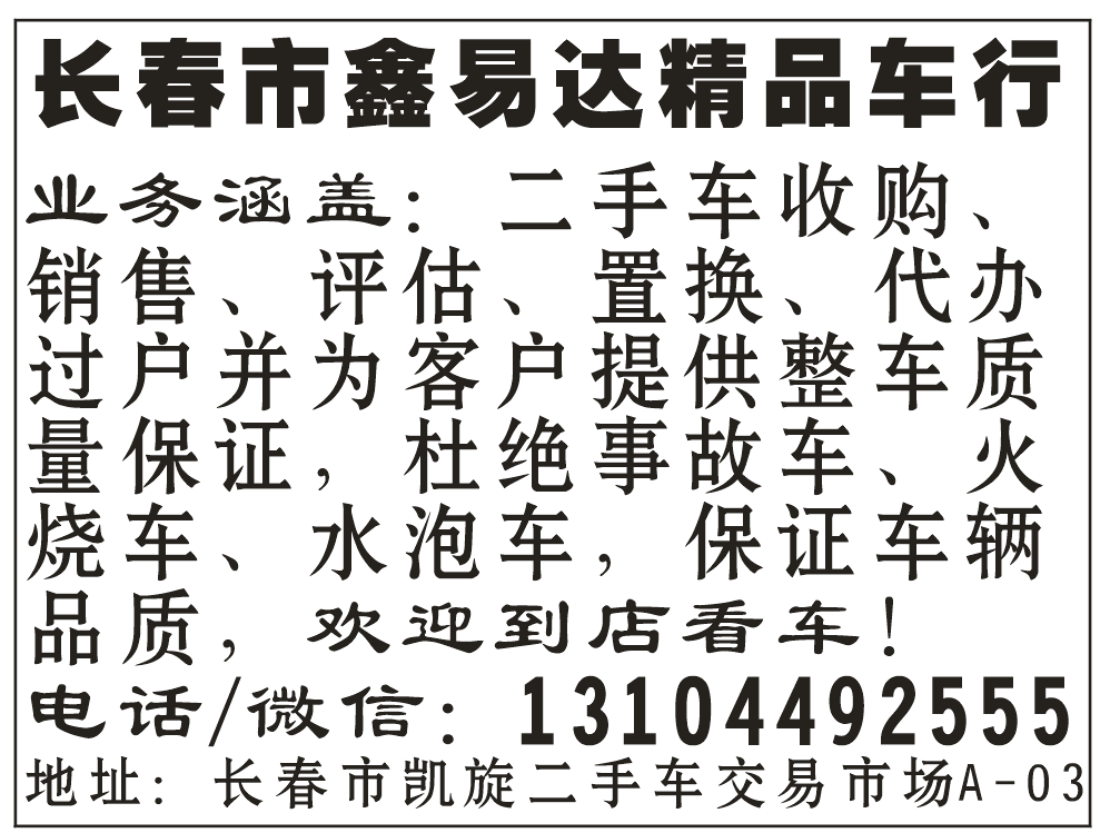 地址:长春市凯旋二手车交易市场A-03