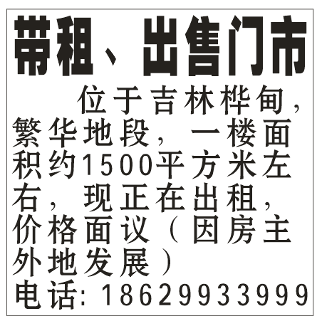 位于吉林桦甸,繁华地段,一楼面积约1500平方米左右,现正在出租,价格面议(因房主外地发展)