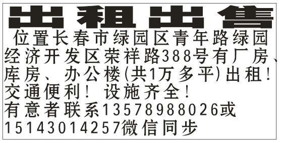 位置长春市绿园区青年路绿园经济开发区荣祥路388号有厂房、库房、办公楼(共1万多平)出租!交通便利!设施齐全!