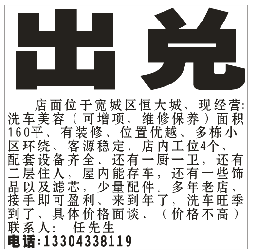 洗车店出兑