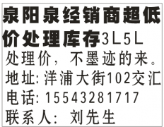 泉阳泉经销商超低价处理库存