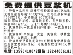 免费提供豆浆机1、经营产品种类:甜味豆浆粉每袋1000克28元。无糖豆浆粉每袋1000克28元